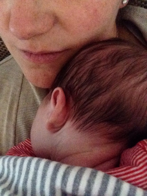 Ze slaapt. Op mijn schouder. Flesje, boertje, en ineens hoor ik haar snurken in mijn oor. Ik zou haar natuurlijk weg moeten leggen. Zeven uur, slaapzakje aan, rust, regelmaat en meer van dat soort dingen. Maar ik doe het niet. Ik sla een dekentje om haar heen en ik laat haar gaan. Ze doet dit bijna nooit meer, slapen op mijn borst, koppie op mijn schouder. En dus koester ik het moment.