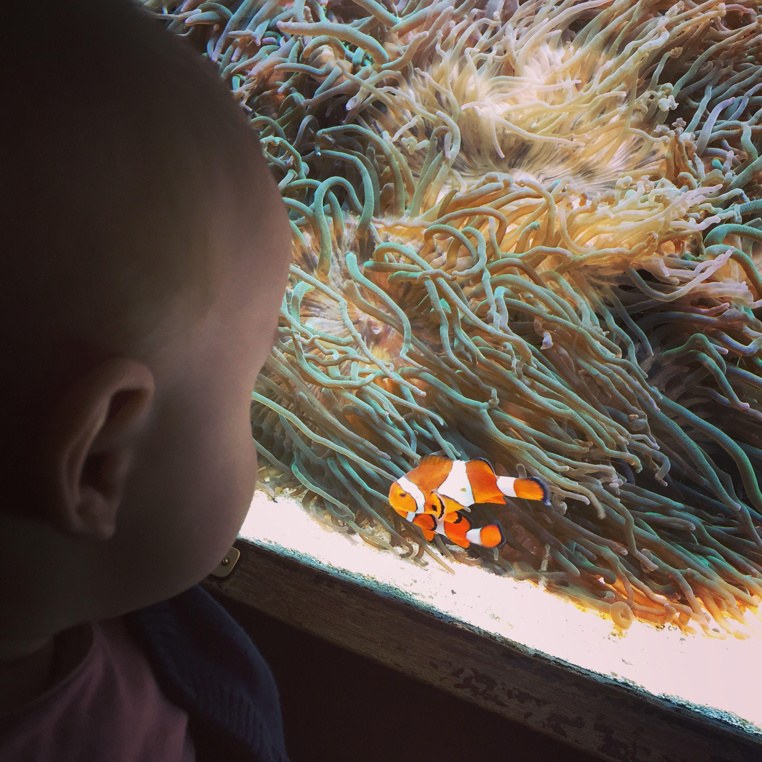 De vissen in het aquarium waren het mooist. Hoe meer kleur hoe beter. Clownsvisjes die kiekeboe spelen tussen anemonen, en met name de kwallen maakte een diepe indruk. Met grote ogen kijken naar de soepele bewegingen door het water. Door naar de gorilla’s, wow een grote voor het raam. Twee handjes op de ruiten, en het liefst had ze het raam meteen even afgelikt. Maar goed, ook ontdekken kent zijn grens.