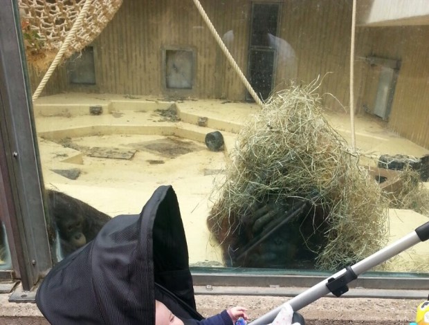 Vogels, ijsberen, slingerende apen en flamingo’s. Haar neef in een bootje, haar nichtje in de wagen, al die mensen en kinderen om ons heen, wat viel er veel te bekijken. Helaas had ze voor de Orang-oetans die voor het raam kwamen zitten om Kate even te bekijken dan net weer geen oog. Andersom was de fascinatie overigens groot.