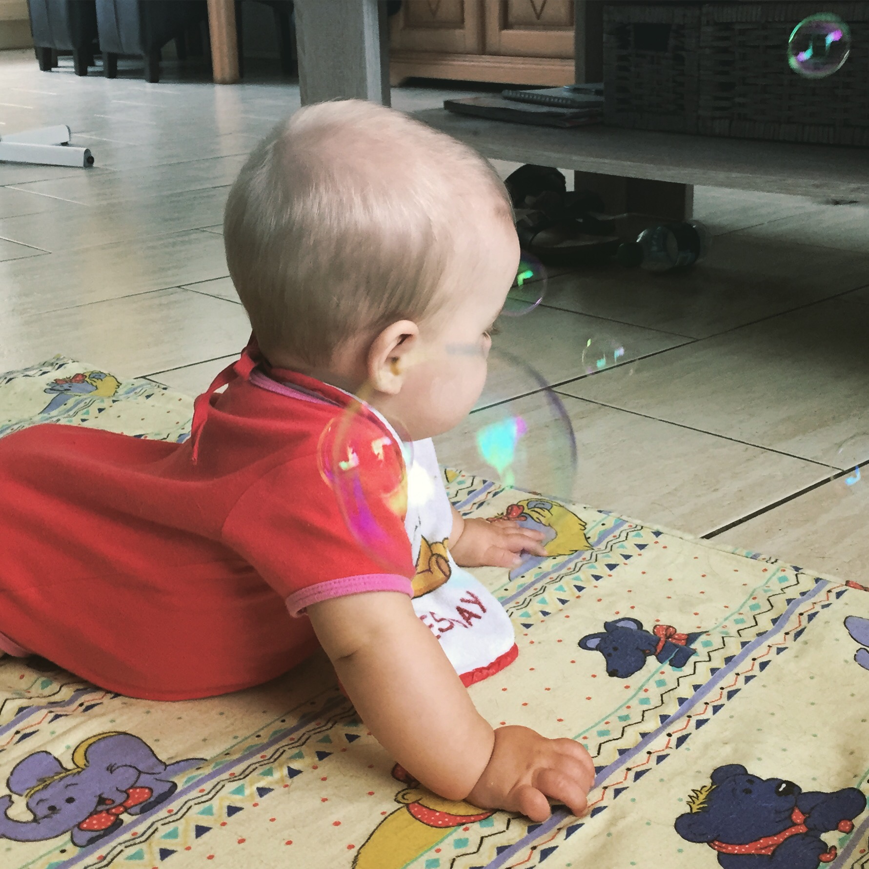 Half zeven is ze er weer. Ik pak haar op. Brede glimlach, ik knuffel haar en ze bijt in mijn kin. Ik heb maar bedacht dat dat een uiting van liefde is. In romper neem ik haar mee naar beneden. Het huis is nog stil, samen zitten we op de bank. Kate een flesje, ik een kopje koffie.