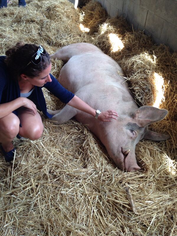 Als vegetariër en dierenvriend was dit bezoek een soort droom. Een enorm landgoed met eindeloze groene velden, vol koeien, varkens, geiten, kalkoenen en kippen. Allemaal hebben ze gruwelijke taferelen meegemaakt en nu leven ze het leven dat ze verdienen, en ze zijn bijna allemaal knuffelbaar.