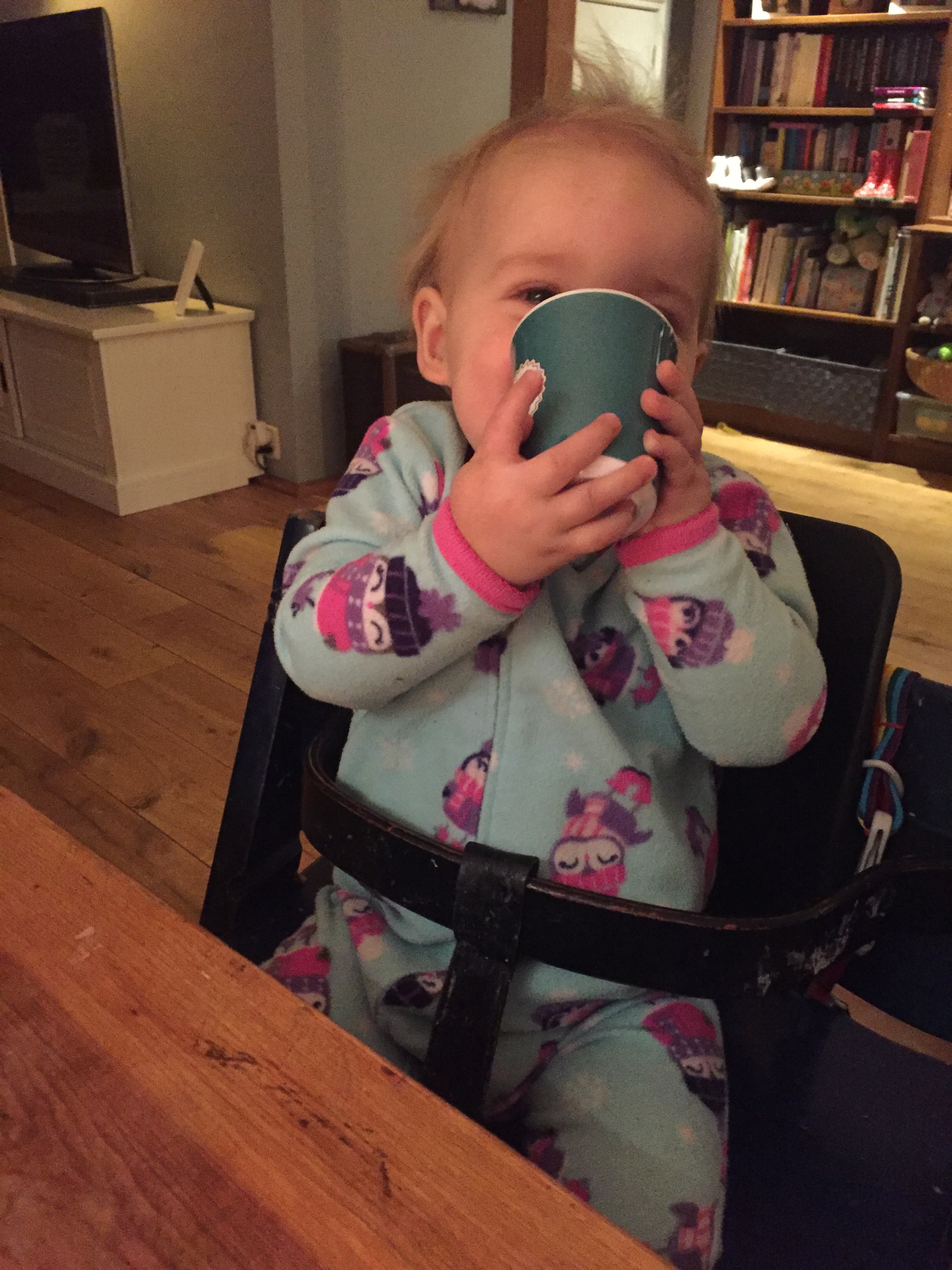 Op advies van het consultatiebureau mag er een fles af. Maar welke? Middagfles, avondfles? Lastig. Ze heeft ze allebei niet ‘echt’ meer nodig. Maar als Kate op de crèche goed (warm) eet, eet ze ’s avonds vaak iets minder en dan is dat flesje nog wel fijn. Goed, middagfles dus, we proberen het gewoon, hopen dat het lukt. Daarnaast wil ze sinds kort ’s middags niet meer slapen. ’s Ochtends een te kort slaapje en dan in de middag niet meer willen. Eigenlijk is ze veel te moe maar ze wil pertinent niet naar bed. Dus dan toch maar over op één slaapje, nu al. We proberen het gewoon, hopen dat het lukt.