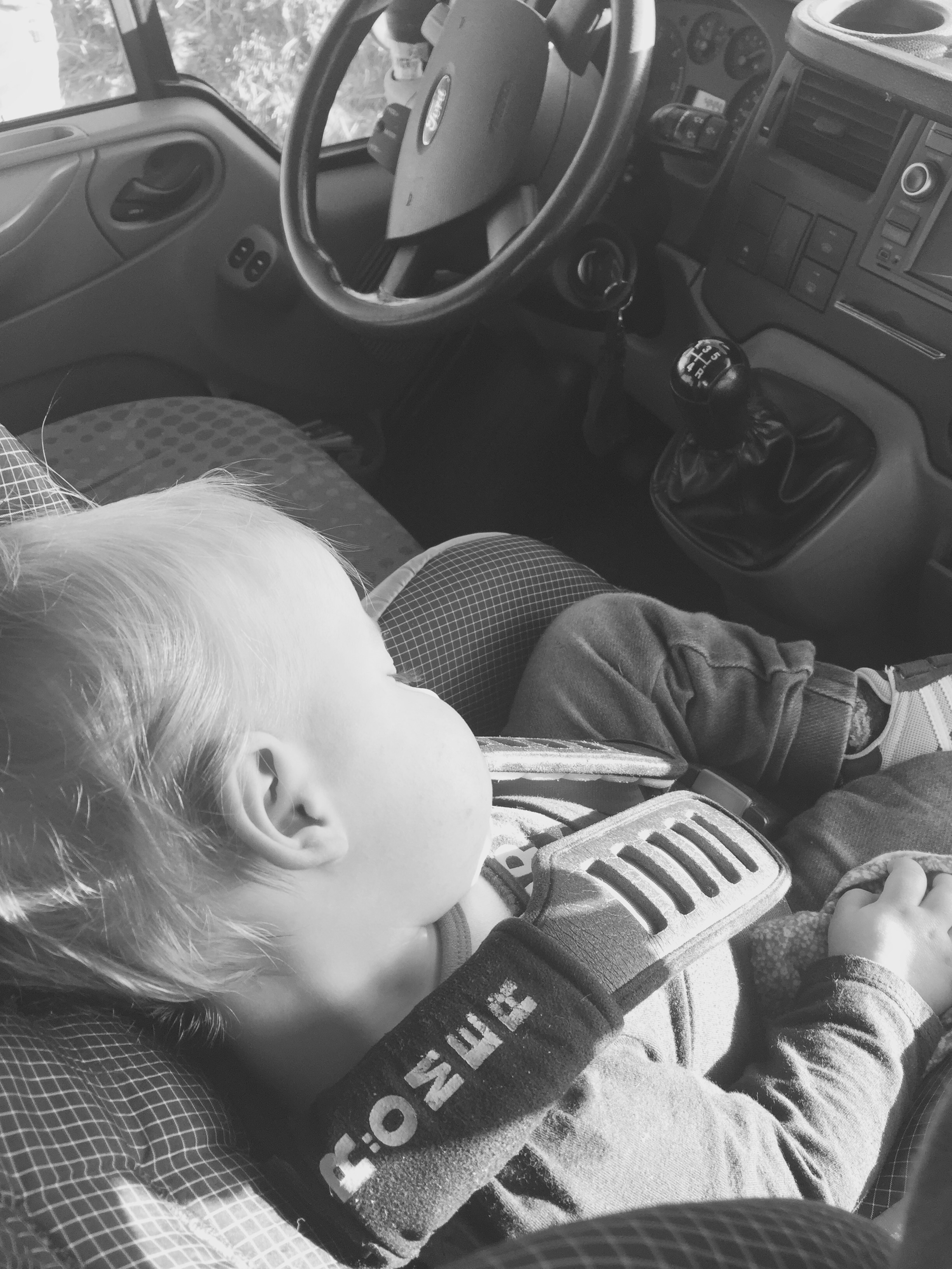 Halverwege de A2 en de papa van Kate haalt koffie. Kate is knock out en mama schrijft nog even snel deze blog. De zon schijnt volop, alles roept ‘vakantie!’. Goed begin van een mooi avontuur.