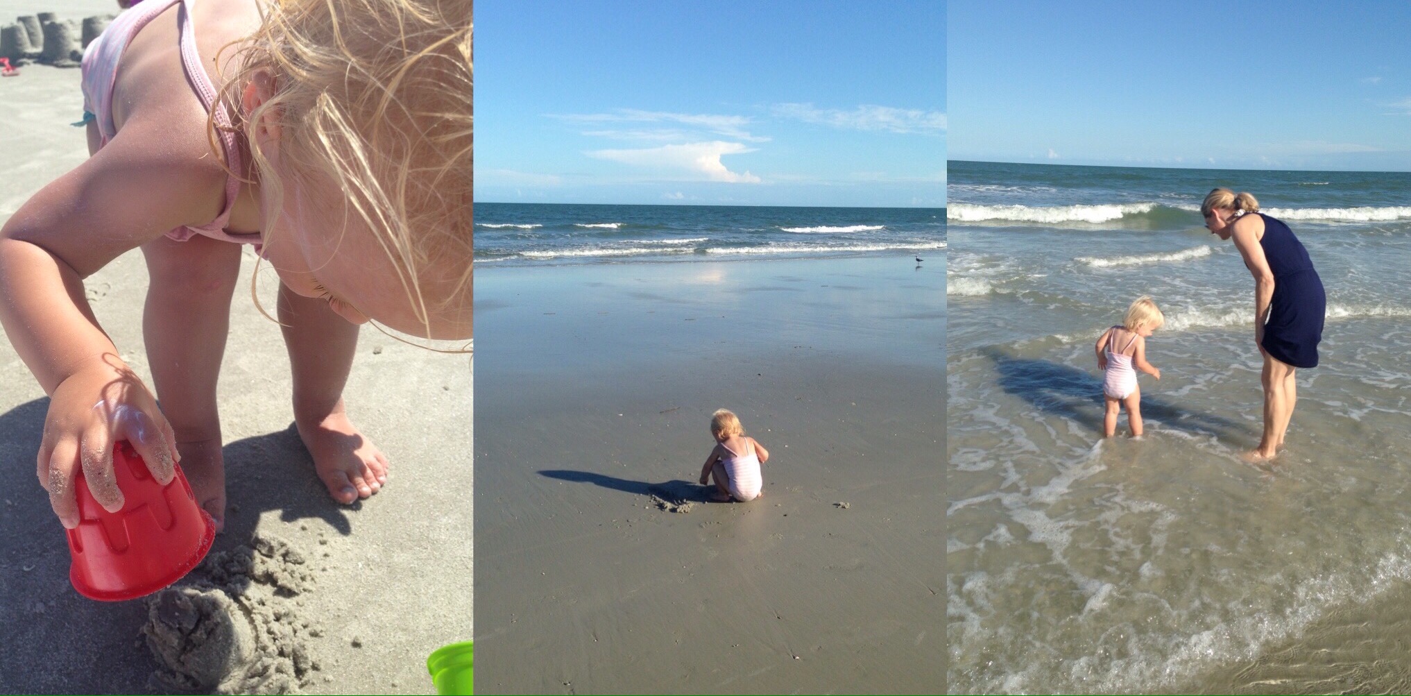 Kate heeft er de tijd van haar leven. Zandkastelen bouwen met oma, schelpen zoeken, en bovenal het water in. Hoe dieper hoe beter. Ze kent geen angst. Ze loopt met een bewonderingswaardige hoeveelheid zelfvertrouwen de zee in. Doodeng! Het idee dat ze onder raakt en ik haar niet meer zie bezorgt me serieus nachtmerries. Maar Kate ziet dat anders en staat gillend van plezier in de golven.