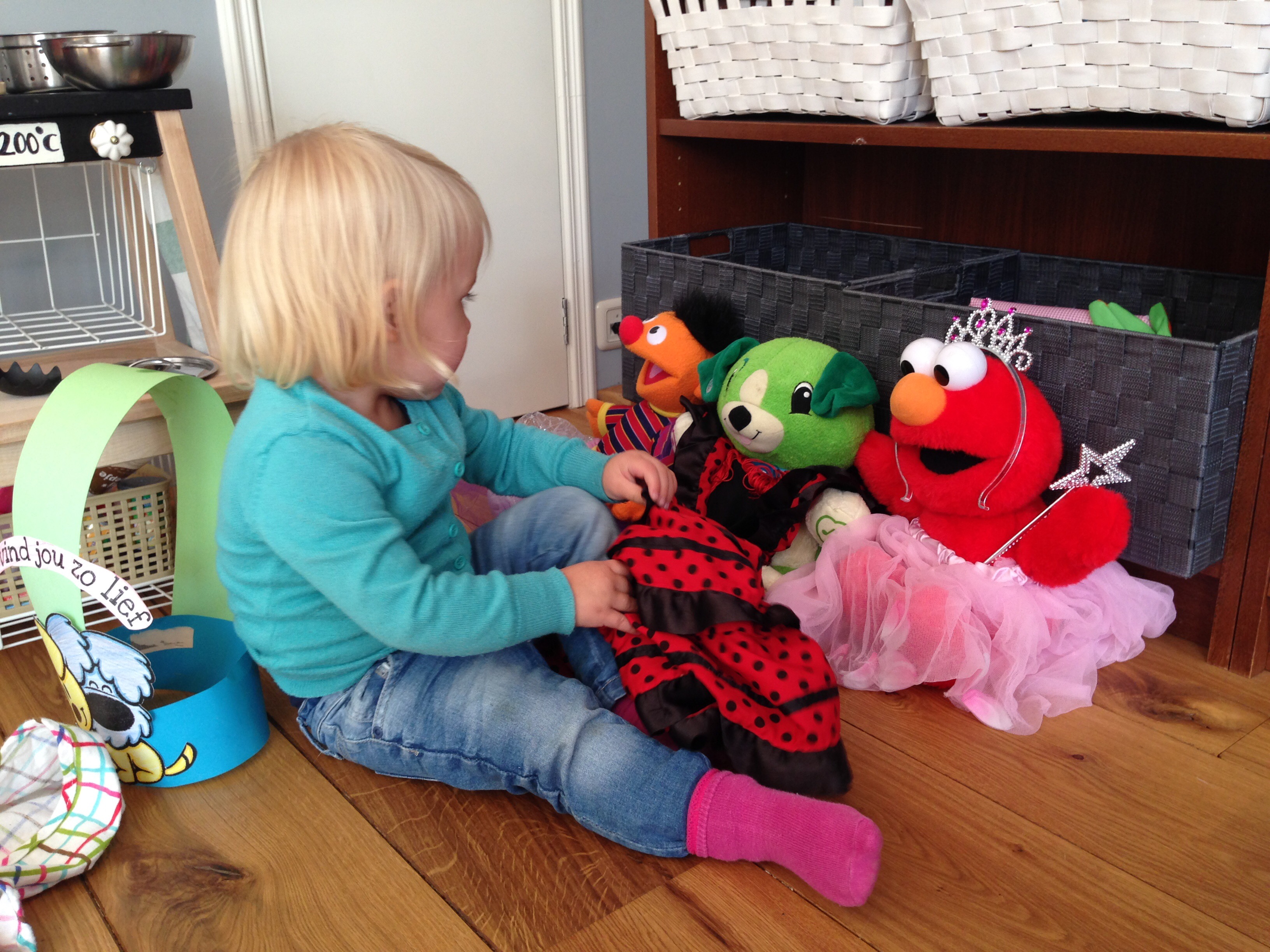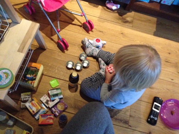 Het huis ademt Kate. Je vind in elke hoek sokken die ze te pas en te onpas uit trekt. De lectuurbak waar ooit keurig een jaargang VT Wonen in lag overloopt nu met Zappelin doe-boeken en Frozen magazines. De beige gemêleerde bank is nu vooral gemêleerd door de vele bekers die er over heen vielen en de de witte kussentjes kleuren inmiddels lekker mee. In mijn bed vind ik elke avond een ander vriendje, Pip, Elmo, soms Dikkie Dik. En dan is er nog Kate’s keukentje die zich elke dag weer vult met echte keukenspullen uit mijn grote mensen keuken. De popjes worden regelmatig bijgevoerd met bakbonen, kappertjes op zout en flesjes lijnzaadolie. Je moet er trek in hebben.