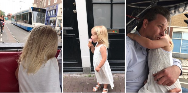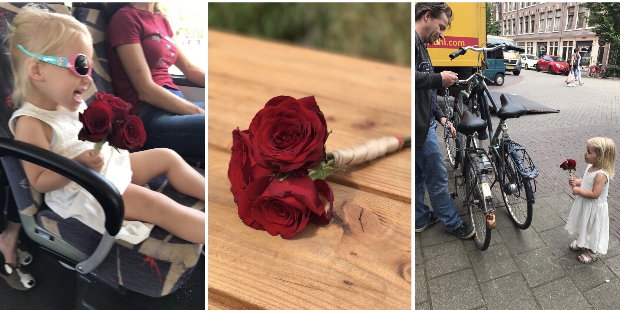 27 juni 2017. We zitten, beide in een wit kanten jurkje, in de bus. Kate gaat volledig op in haar rol, bril op haar neus, boeket in haar handen. Aangekomen in Amsterdam samen op papa gewacht. Die wist alleen dat hij om 15.00 uur op de afgesproken plek moest zijn. Toen hij eindelijk aan kwam fietsen vroeg Kate: ‘Papa wil je trouwen?’ -smelt-