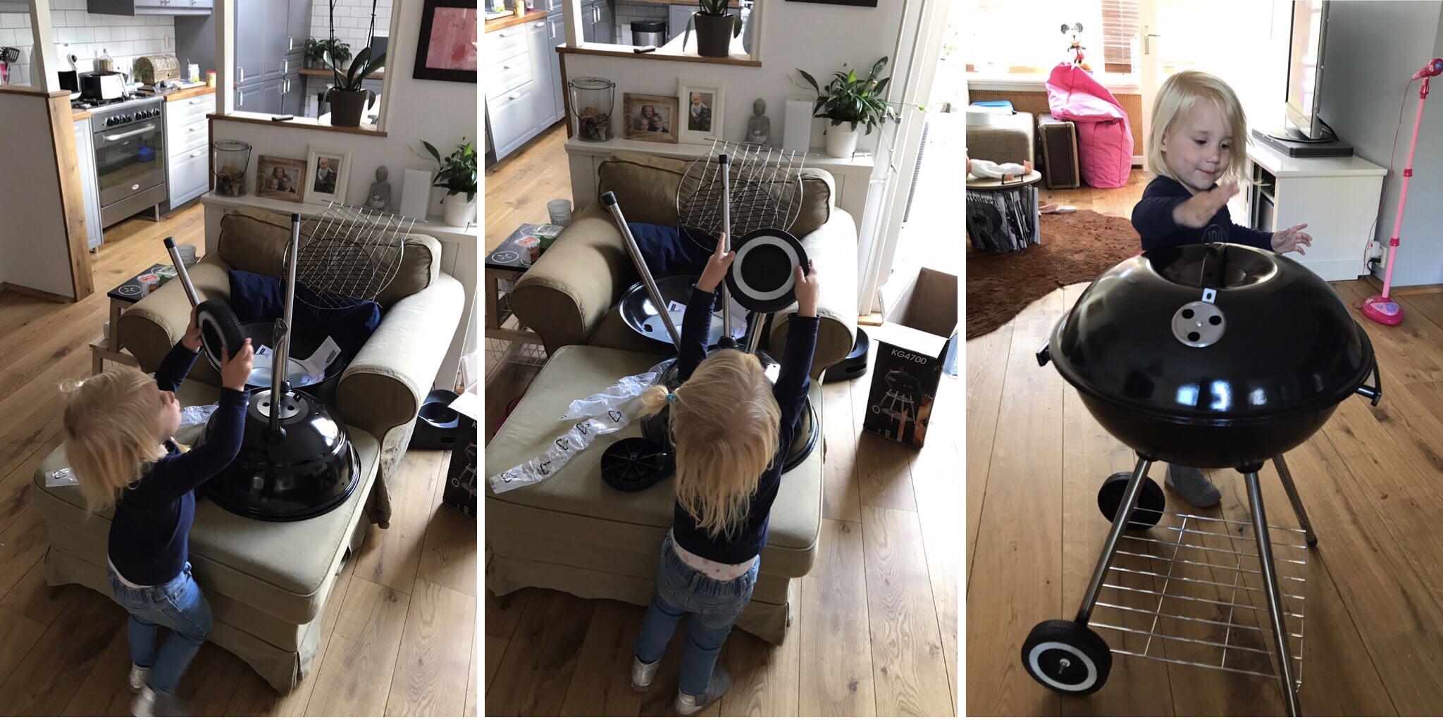 Het plan: Een dag vol verassingen afgesloten met een heerlijk ongedwongen bbq. Moest ik die wel eerst nog even aanschaffen en monteren. En alles buiten het zicht van de papa van Kate, het was tenslotte wel een verassing! Gelukkig vond ik in Kate een goede klus-hulp.