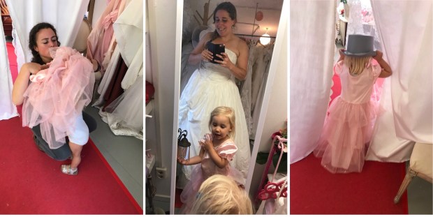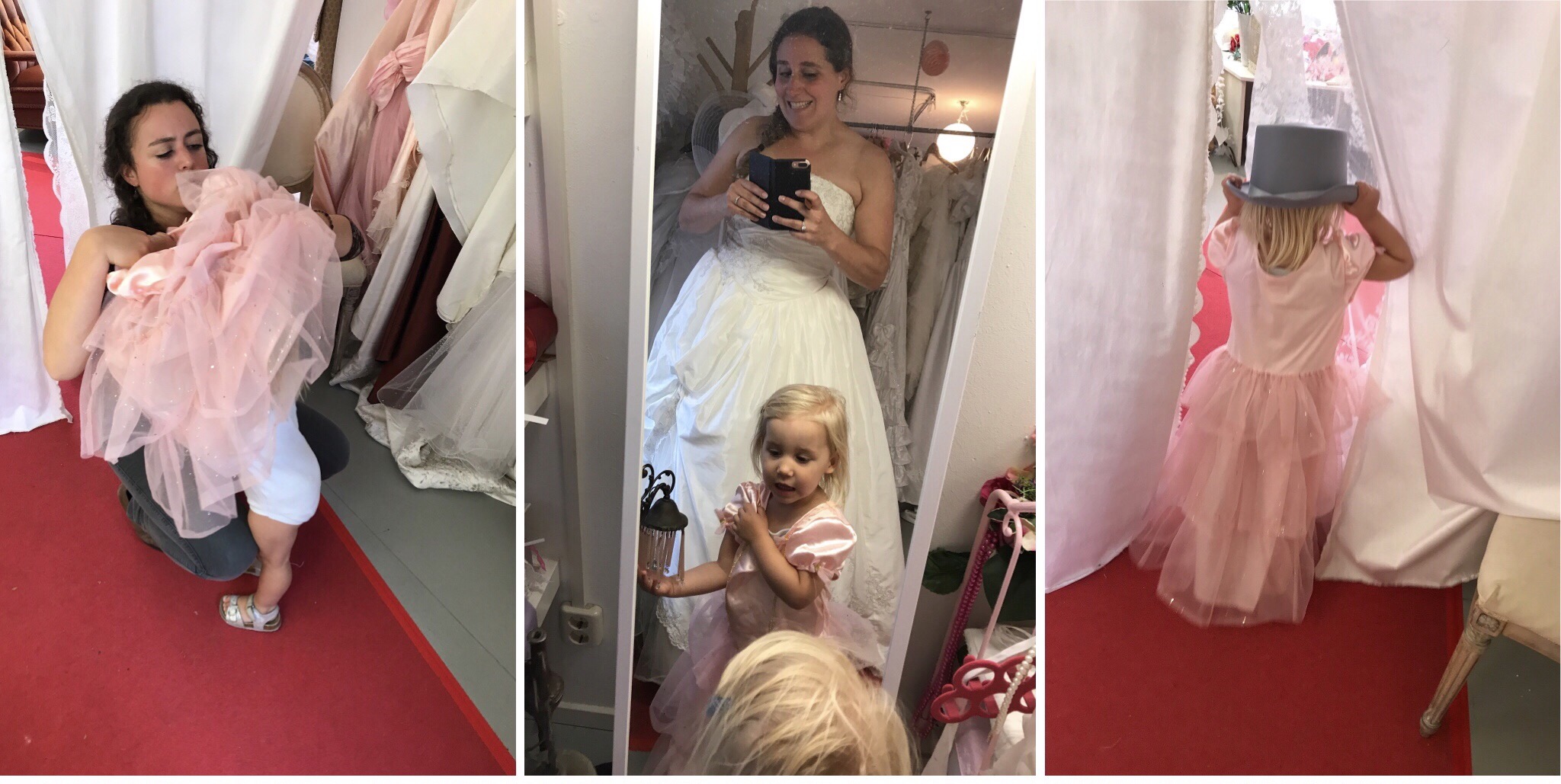 In de winkel van ‘Het is Liefde’ vind je de bruiloft-suite van ‘Wed & Walk’. We gaan echt (maar onofficieel) nog een keer trouwen! Ik vind een mooie jurk, papa een keurig pak, en Kate een roze prinsessenjurk. De muziek zwelt aan, de rode loper rolt uit en daar komt de bruid. In een zorgvuldig geschreven speech bevestig ik mijn onvoorwaardelijke liefde aan hem, en aan kleine Kate. “Ik hou van jou, met heel mijn hart en ziel. Vandaag trouw ik weer met jou. En ik hoop dat nog heel vaak te mogen doen. Je bent alles voor me, en alles wat ik nodig heb. All you need is Love. To the moon and back…” Twee keer een overtuigend ja-woord en het is beklonken.