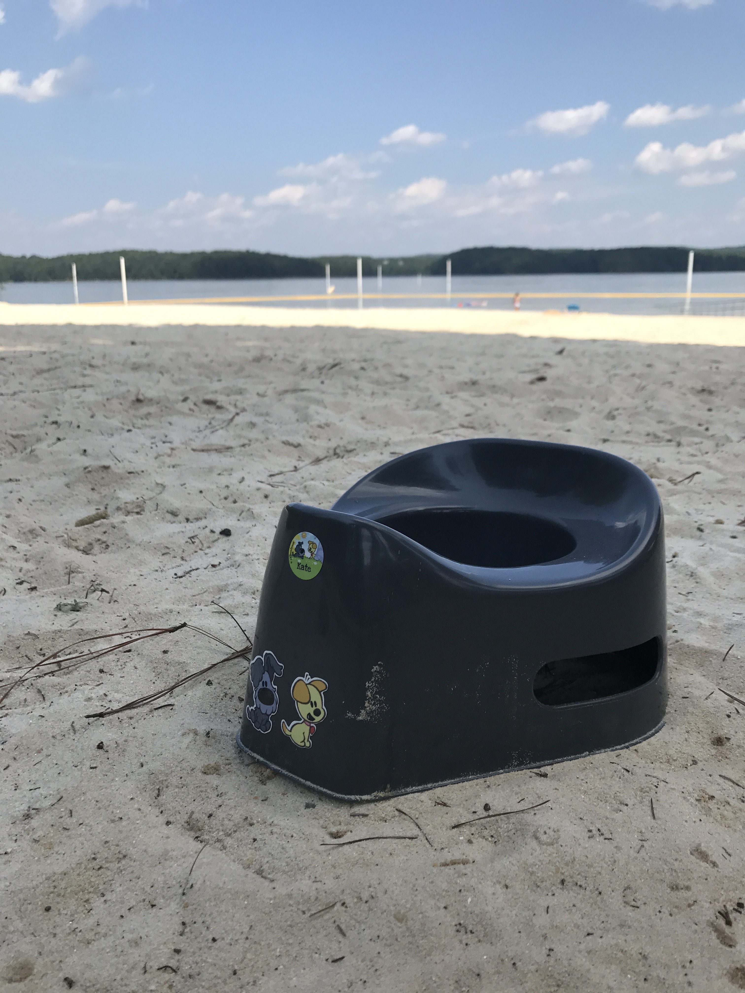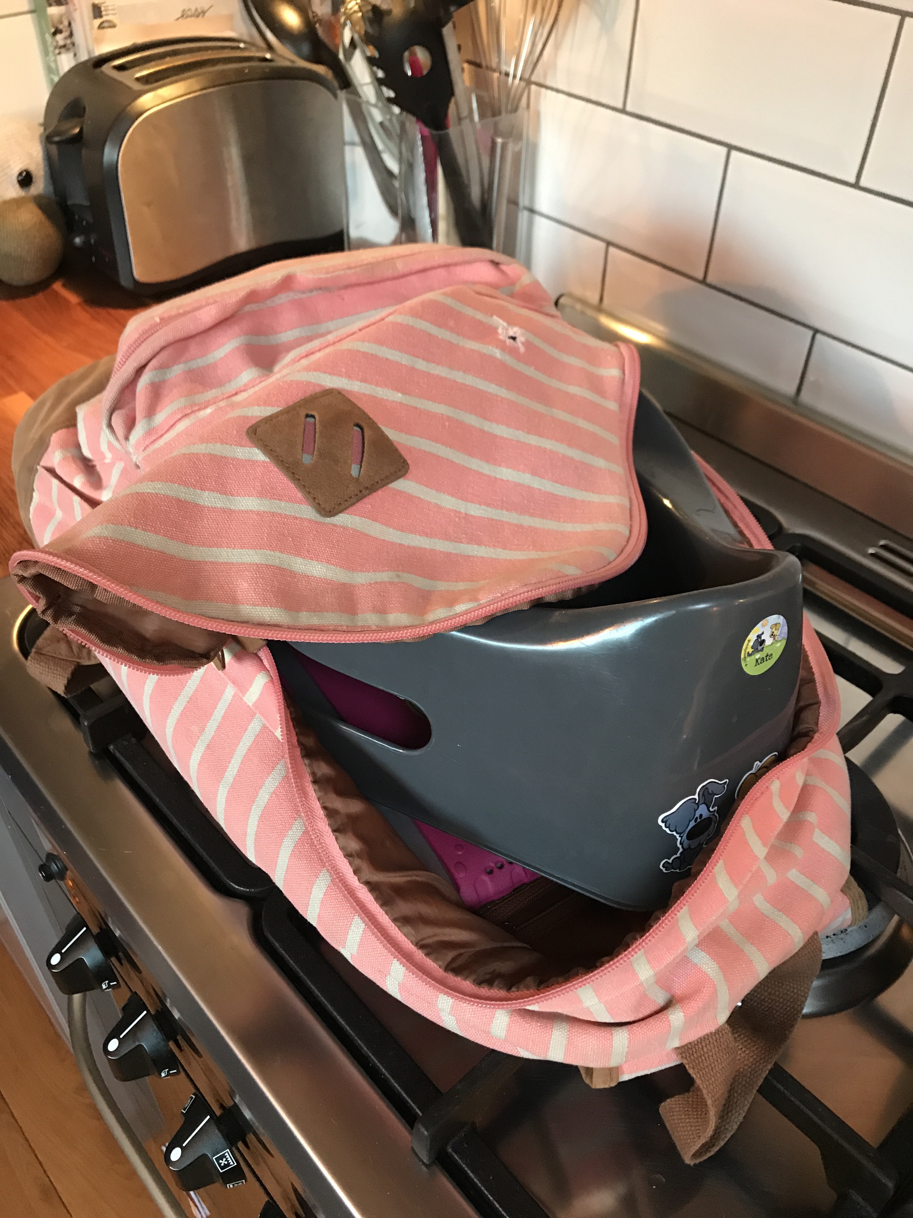 Het is natuurlijk niet handig. Dat gesleep, dat ding op je rug. En een gebrek aan leuke handtas omdat ik die tas op mijn rug heb. Maar we bekijken het maar van de positieve kant. Mijn kind is gewoon zindelijk! En het weegt natuurlijk niets. Ook fijn, we zijn nu op vakantie en het scheelt een hele hoop vieze toiletten en daarbij een hoop desinfecterende handgel. Komt wel goed in september.