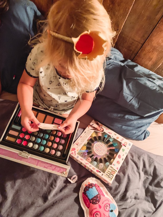 Maar wanneer ik haar ’s avonds naar haar bed breng en haar even later zie slapen duik ik toch nog even in het sentiment. Mijn meisje is vijf. Ik ben al vijf jaar moeder. Het vliegt allemaal zo snel voorbij. Kleine meisje net geboren, een kruiper, eerste stapjes, praatjes. Dat kleine eigenwijze dametje en nu zit ze met haar lange rapunzel lokken te make-uppen alsof ze vanavond nog de stad in gaat. Gelukkig is dat nog ver, heel ver weg, en blijft ze voorlopig gewoon mijn stoere kleuter. Maar het baby’tje met de bolle wangen is een echte juffrouw geworden. En ik kan niet anders dan super trots zijn.