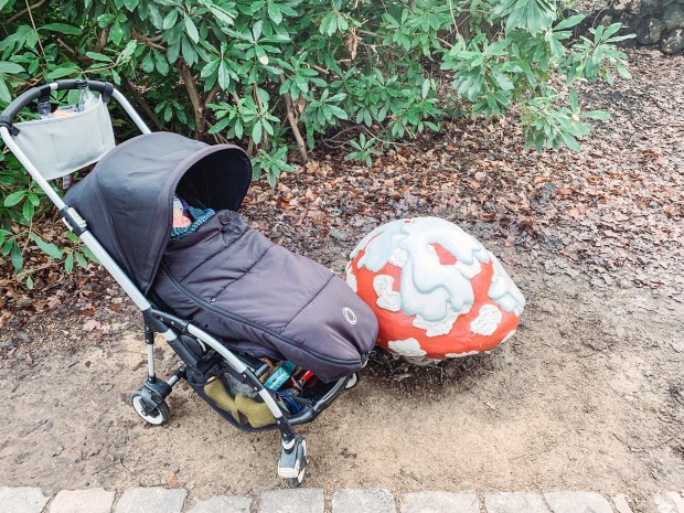 De hele afgelopen week riep ik al dat het me zo leuk leek om Mick door het sprookjesbos te zien hobbelen nu hij zo goed kan lopen. Ik zag hem al aan het hekje van de heks rammelen, verwonderd struinen door kabouter huisjes en met één oor luisteren aan één van de muzikale paddenstoelen. Ons geluk, Mick viel zo’n beetje op de drempel van het sprookjesbos in slaap en sliep bijna twee uur onafgebroken. Lekker dan. (Al was het slapen an sich helemaal geen slecht idee.)